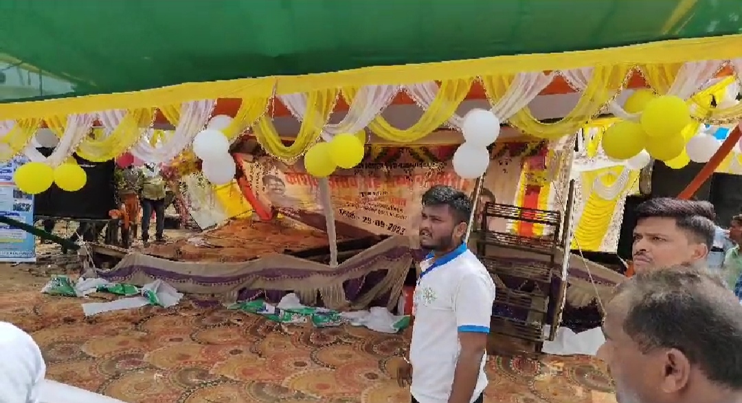 बाल बाल बचे श्रम मंत्री, भाषण के दौरान मंच गिरा