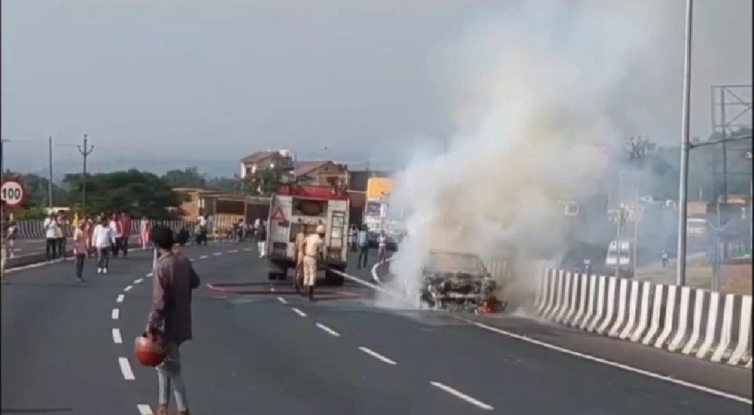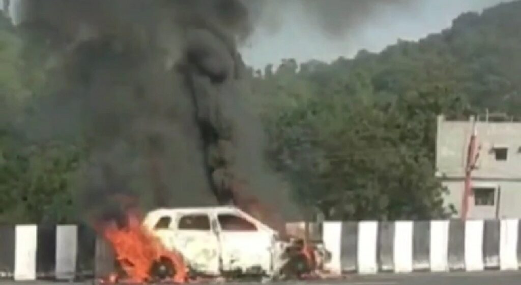 रामगढ़ के फ्लाईओवर पर धू धू कर जल उठी कार