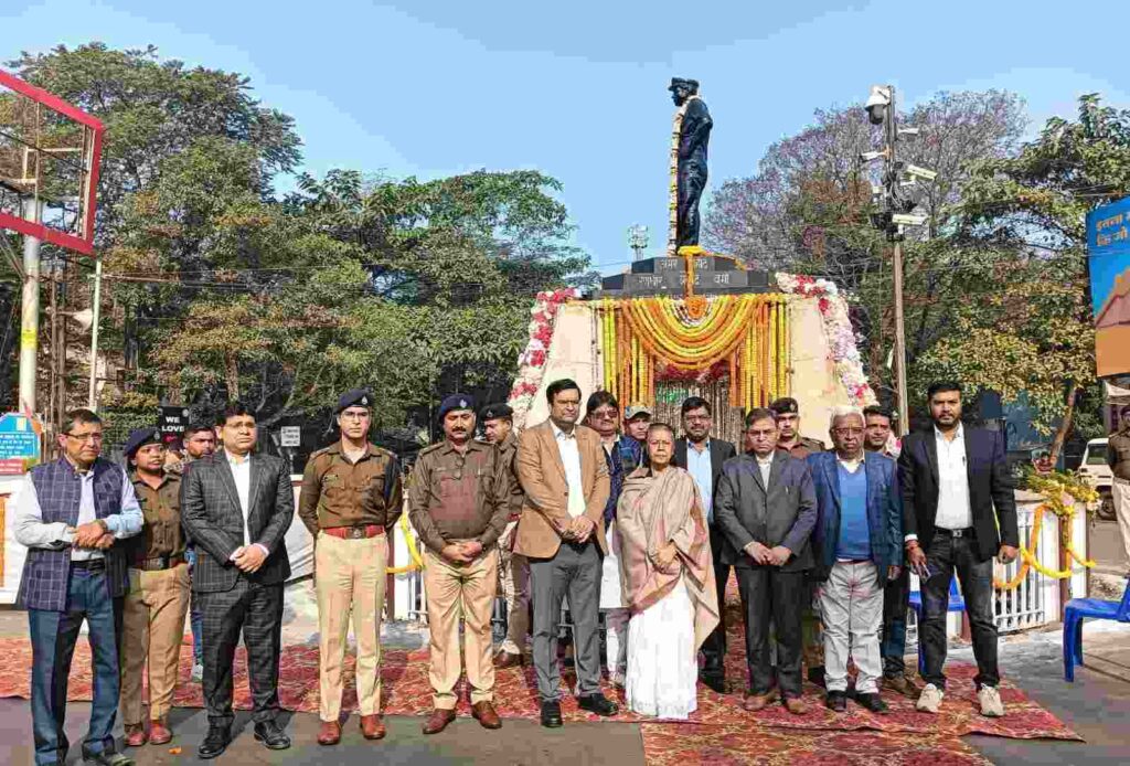AJ डेस्क: धनबाद के जांबाज एसपी अशोक चक्र शहीद रणधीर वर्मा के 33 वें शहादत दिवस पर रणधीर वर्मा चौक, बैंक मोड़ थाना तथा बैंक ऑफ इंडिया हीरापुर ब्रांच में आयोजित कार्यक्रम में उपायुक्त सह जिला दंडाधिकारी वरुण रंजन, उप विकास आयुक्त शशि प्रकाश सिंह, सिटी एसपी अजीत कुमार, ग्रामीण एसपी कपिल चौधरी, शहीद रणधीर वर्मा की पत्नी व पूर्व केंद्रीय राज्य मंत्री प्रोफेसर रीता वर्मा सहित अन्य पदाधिकारियों ने शहीद रणधीर वर्मा को भावपूर्ण श्रद्धांजलि दी। श्रद्धांजलि अर्पित करने से पूर्व पुलिस बल ने उन्हें सशस्त्र सलामी दी। मातमी धुन बजाया और 2 मिनट का मौन रखा गया।