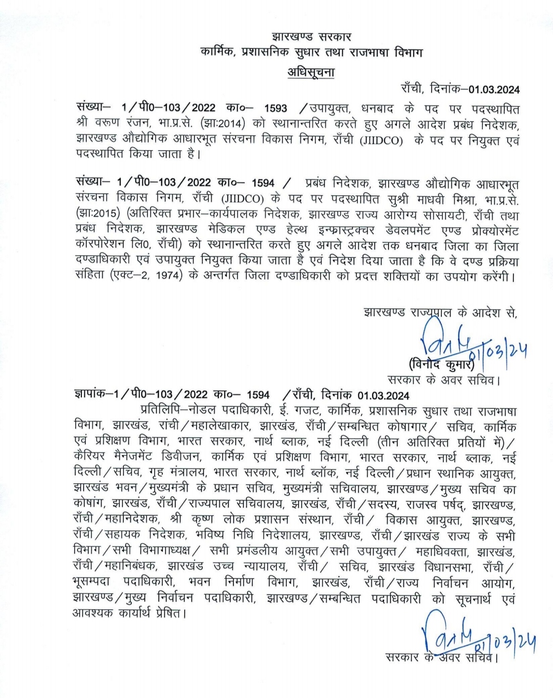 BREAKING NEWS झारखंड सुश्री माधवी मिश्रा बनीं धनबाद की उपायुक्त 2 years ago Analjyoti AJ डेस्क: राज्य सरकार ने आज धनबाद के उपायुक्त वरुण रंजन का तबादला करते हुए सुश्री माधवी मिश्रा को धनबाद उपायुक्त की जिम्मेवारी सौंपी है। देखें लिस्ट- Continue Reading Previous “अबकी बार 4 सौ पार”, “गारंटी में दम है”, “जनता का लूटा हुआ पैसा लौटाना पड़ेगा”- मोदीNext टाटा स्टील सिजुआ ग्रुप ने कर्मचारियों और अनुबंध कार्यबल को नई सुविधाएं प्रदान की Leave a Reply Cancel replyYour email address will not be published. Required fields are marked *Comment Name * Email * Website