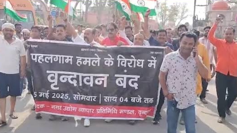 पहलगाम हमले के विरोध में वृंदावन में सफल रहा बंद