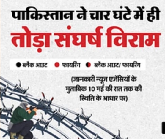 चार घंटे में ही पाकिस्तान ने तोड़ा संघर्ष विराम