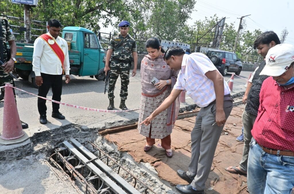 इस दौरान उन्होंने आर.सी.सी. ढलाई, फ्लाईओवर का जोइंट, मरम्मत में उपयोग हो रही सामग्री, जेसीबी व न्यूमेटिक मशीन से निकाला जा रहा पुराना लेयर, कार्य की प्रगति सहित अन्य बिंदुओं पर निरीक्षण किया।