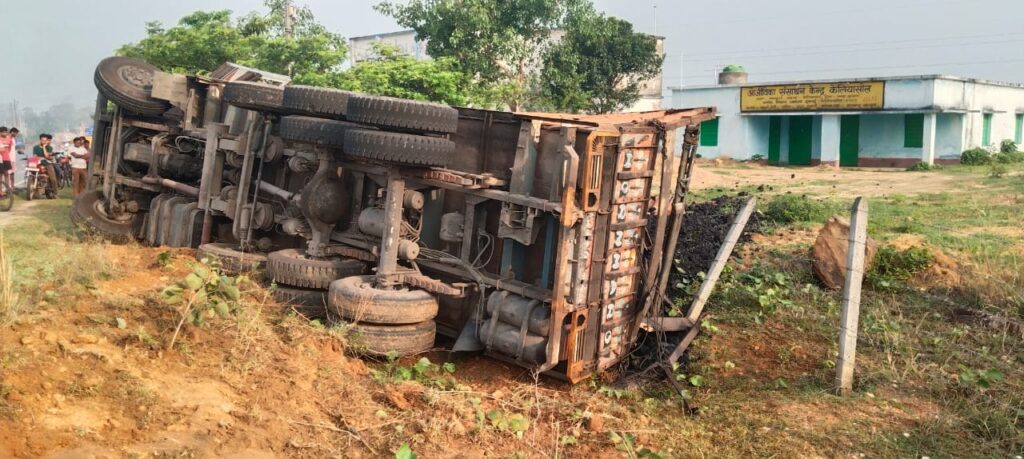 चिरकुंडा के डुमरी जोर से चोरी का कोयला लोड कर चला ट्रक कालू बथान में पलटा