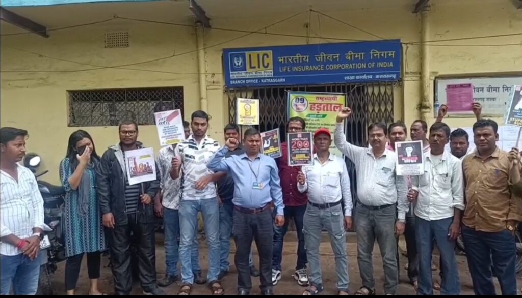 कतरास एलआईसी, यूनियन बैंक कर्मी कार्यालय के बाहर सरकार के खिलाफ प्रदर्शन कर हड़ताल का समर्थन किया है।सरकार से एफडीआई वापस लेने,आउटसोर्सिंग को बढ़ावा नही देने की मांग करते हुए प्रदर्शन किया है।
