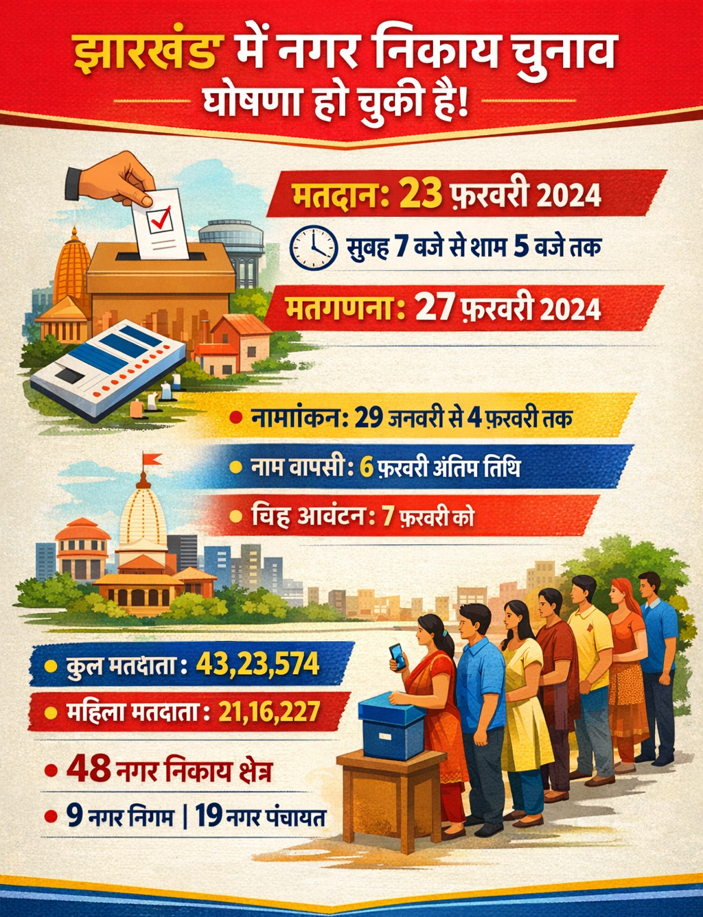 झारखंड में नगर निकाय चुनाव की घोषणा, 23 को वोटिंग और 27 को काउंटिंग