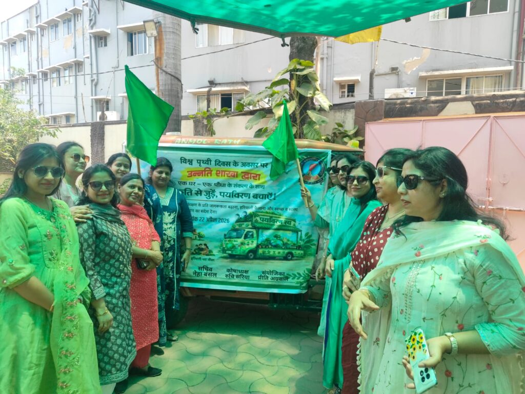 ने पर्यावरण संरक्षण को ध्यान में रखते हुए एक पर्यावरण रथ निकला जिसके अंतर्गत500 घरों में पौधों का वितरण किया गया। इस कार्यक्रम की शुरुआत गोविंदपुर थाना प्रभारी *श्री विष्णु प्रसाद रावत* को सम्मानित कर पौधा देकर की गई,। इस पहल का मुख्य उद्देश्य लोगों को पर्यावरण के प्रति जागरूक करना है। इस कार्यक्रम में हमारी शाखा के अध्यक्ष पायल मित्तल,कोषाध्यक्ष रुचि सरिया, निवर्तमान अध्यक्ष ज्योति अग्रवाल , प्रांतीय सहायक मंत्री स्नेहा तायल, पर्यावरण संयोजिका प्रीति अग्रवाल, सदस्य रश्मि मित्तल, सौम्या गोयनका, वंशिका सरिया, नेहा अग्रवाल, खुशबू अग्रवाल, पूनम अग्रवाल, पूजा अग्रवाल, विशाखा अग्रवाल, प्रीति अग्रवाल, रेखा अग्रवाल और नेहा बंसल की अहम भूमिका रही।