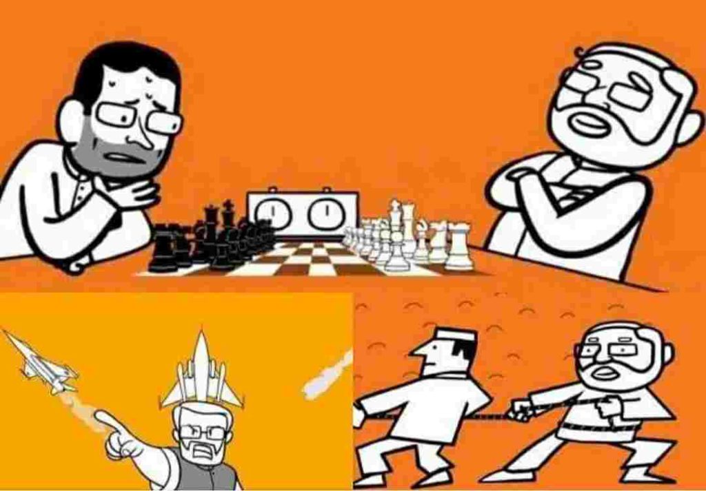 राहुल गांधी के साथ मोदी के कार्टून को शतरंज खेलते हुए दिखाया गया है। इस कार्टून वीडियो को ट्वीट करते हुए बीजेपी ने लिखा, ‘चेस के इस खेल में ऐसा बुरा हाल… कन्फ्यूजन में रहने वाली टीम चारों खाने चित होगी इस बार, फिर एक बार मोदी सरकार।’