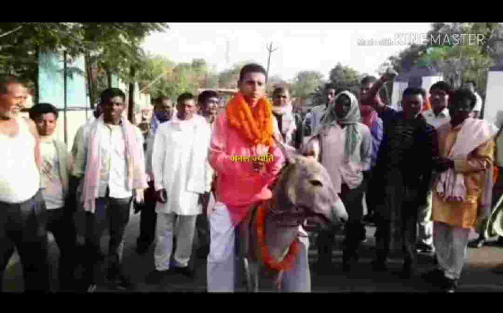 एक व्यक्ति जिसने गुलाबी रंग का कुर्ता और सफेद रंग का पायजामा पहन रखा था। उसकी गर्दन भी गेंदा फूल की माला से लदी हुई थी। पीछे कुछ लोग उसका नाम लेकर उसके समर्थन में नारे भी लगा रहे थे। इससे ये तो साबित हो रहा था कि ये कोई नेता जी है जो यहाँ लोकसभा चुनाव के मद्देनजर अपना नामांकन दर्ज कराने आए है। इतना तो और नेताओं की तरह ही कॉमन था। लेकिन उन्होंने यहाँ तक पहुंचने के लिए जिस सवारी का प्रयोग किया था वो इन्हें बाकी प्रत्याशियों से अलग कर रहा था। दरअसल ये जनाब किसी गाड़ी या बैलगाड़ी पर नहीं बल्कि गधे पर बैठ कर अपना नामांकन दर्ज कराने यहाँ पहुंचे थे।