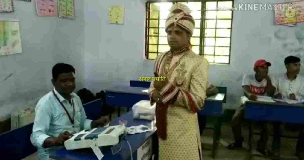VIDEO- “वाह बहुत खूब” दुल्हन से मिलने की नहीं पहले मतदान को बेताब दूल्हा पहुंचा बूथ पर